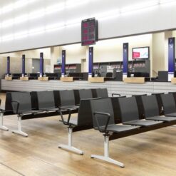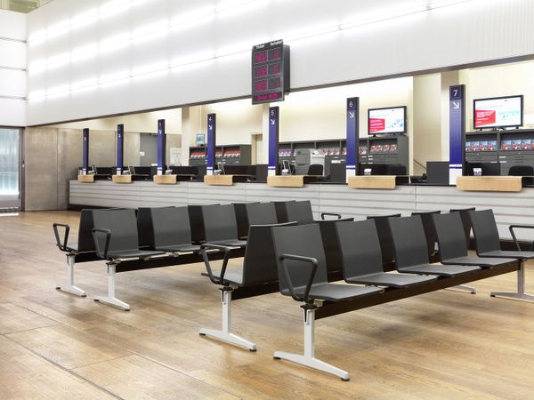 Mounted on cross beams, the .04 bench units are ideally suited to serve as modular furniture in waiting areas.