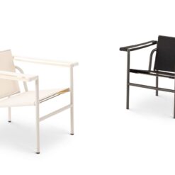 Introduced in 1929, along with other emblematic pieces like the Fauteuil Grand Confort, petit modèle and Fauteuil Grand Confort, grand modèle armchairs, Table tube d’avion table and Chaise longue à reglage continu. Like all of Le Corbusier’s works, the Fauteuil à dossier basculant armchair stems from in-depth study of human posture and is engineered to provide perfect support for extraordinary relaxation that puts one in the mood for conversation.