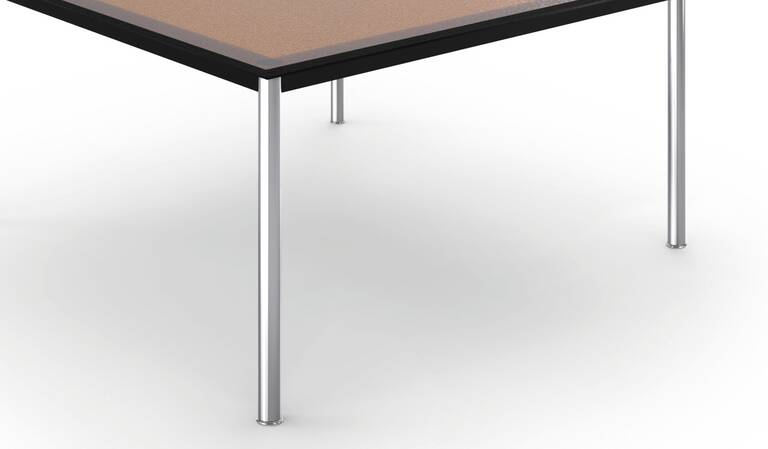 The table, in its original size, which was originally presented as a writing desk, was revisited by Perriand in 1984, and relaunched by Cassina one year later, offering new features to keep pace with contemporary needs. The minimalist design of the frame is revealed in the uniqueness of the chrome finish on the tubular steel uprights and the coloured lacquer finish on the crosspieces.