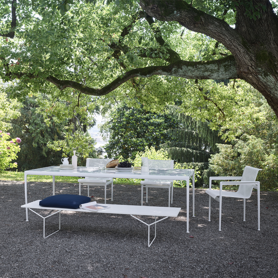 Richard Schultz’s outdoor dining chairs have been setting the scene for modern meals since 1966. The aluminum frame is resilient to weather and wind, while the signature mesh seat permits airflow to keep you cool.