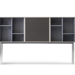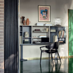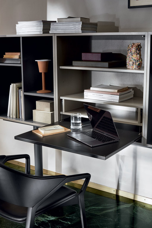 The Casiers Standard form part of the project crafted in 1925 with Pierre Jeanneret for the Pavillon de l’Esprit Nouveau, with which the Master abandons the traditional furniture concept introducing, alongside select pieces of furniture, these new modular, combinable containers. With their timeless, unique design, these elements can architecturally organize any room, arranging themselves into real furnished partitions. Part of the Le Corbusier®, Pierre Jeanneret®, Charlotte Perriand® Collection, the Casiers Standard were relaunched in 2016 with a contemporary look that accentuates their characteristics of versatility and functionality. The containers are currently offered in fixed arrangements based on the standard-size 75x75x37.5 module equipped with shelves that can be adjusted to five heights. This version features a support made up of four slender chrome columns (pilotis).