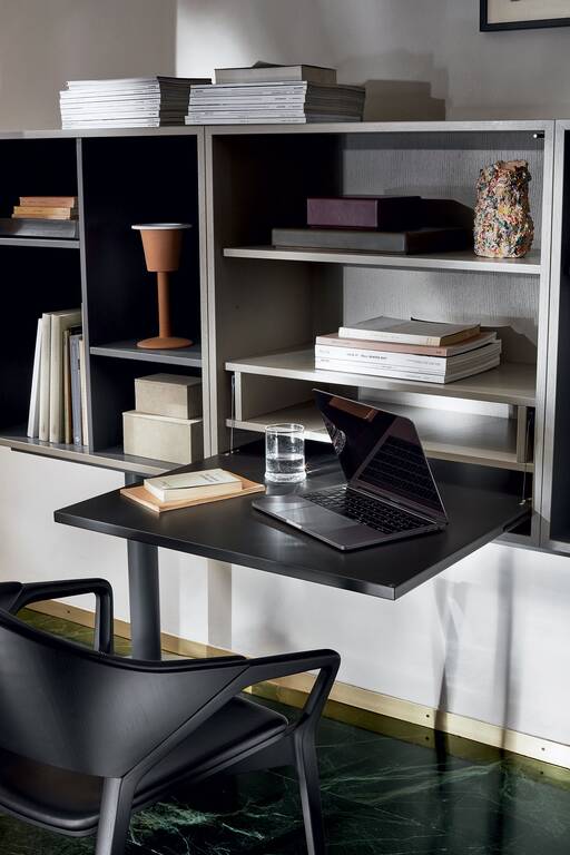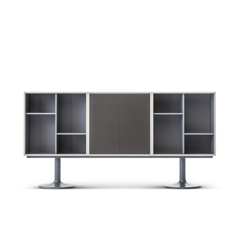 The Casiers Standard were relaunched in 2016 with a contemporary look with new features that highlight the inherent quality of the object, accentuating their characteristics of versatility and functionality. The containers are currently offered in fixed arrangements based on the standard-size 75x75x37.5 module equipped with shelves that can be adjusted to five heights and supported by two painted pedestal bases.