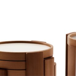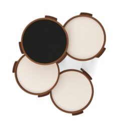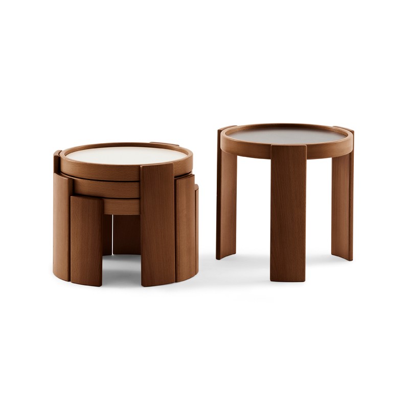 Designed by Gianfranco Frattini, these four low tables, the smallest being 42 cm in diameter and the largest 61, their heights being similarly graduated, can be stacked to form a sculptural effect reminiscent of a drum.