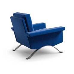 Designed by Ico Parisi in 1960 for Cassina, at that time “Figli di Amedeo Cassina”, the 875 is a welcoming and elegant armchair. The author’s typical experimentation has led to a project that is both classic and modern at the same time. Its proportions, with its large seat and comfortable armrests, outline its solemn profile, while the original arched steel supports in different finishes – to which its shell is bound – and the contrast of different materials make it eclectic, innovative and functional in any room of the house. The structure of the armchair, initially padded with foam rubber cut into sharp edges, has now been re-issued with polyurethane foam padding to maintain its linear shape. Both the seat and backrest are upholstered in fabric from the Cassina collections, as are the removable cushions.