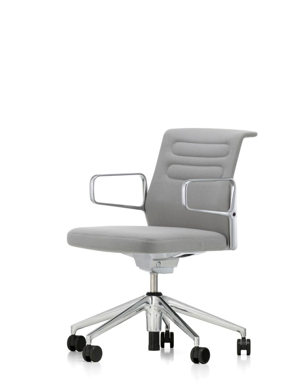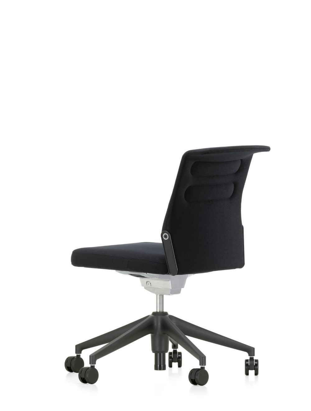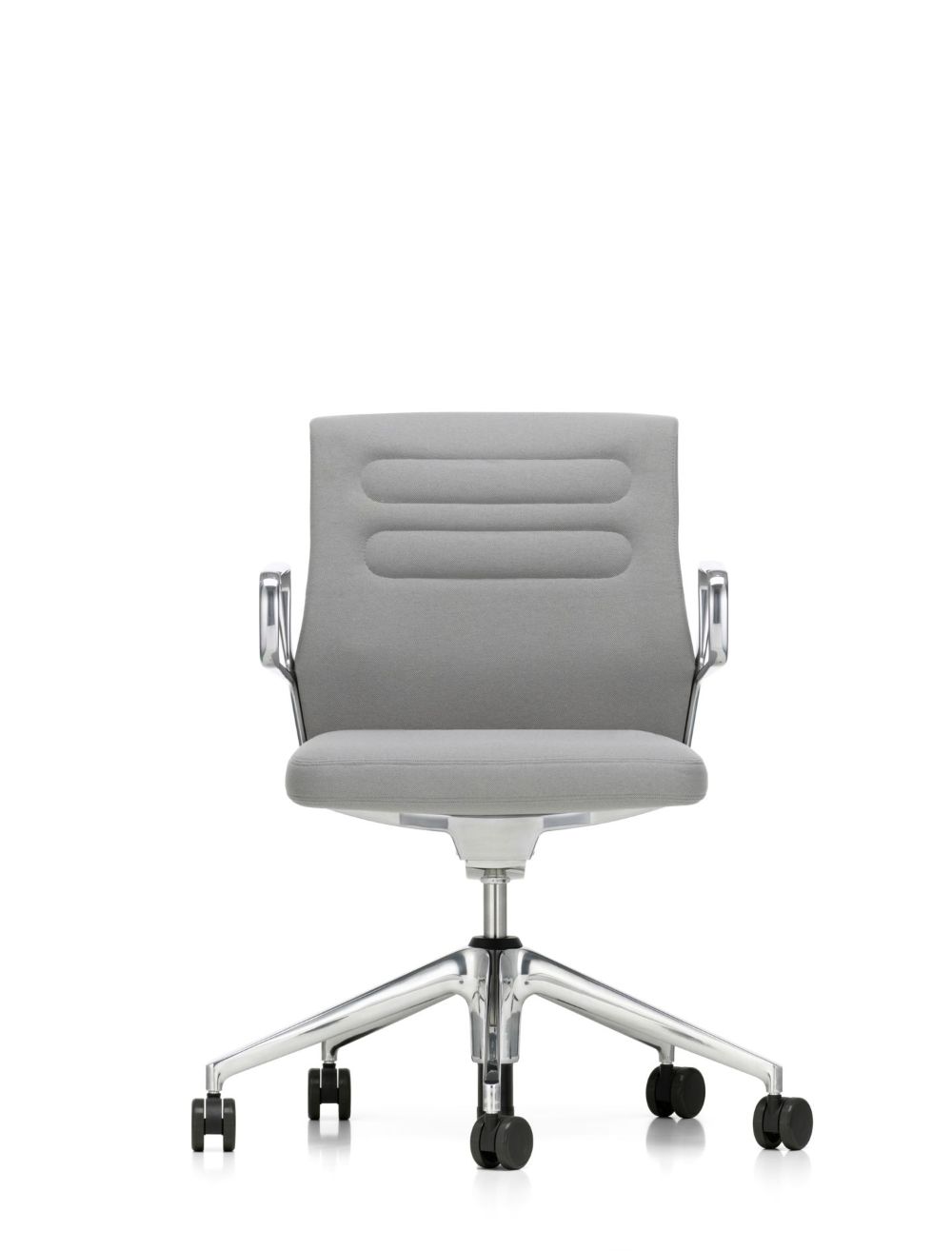 five-star base in polished die-cast aluminium or plastic (basic dark) on double castors (Ø 60 mm). Swivel mount, height adjustable.