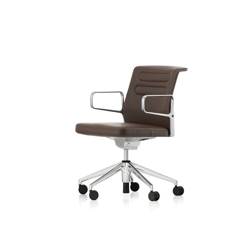 without armrests or with polished die-cast aluminium ring armrests, optional leather pads (pads are matched to the leather upholstery; for