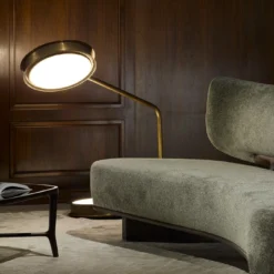 Ceccotti Collezioni’s offering expands to include “luminous fixtures.” Through collaboration with designers, Ceccotti Collezioni offers a series of lamps that enhance spaces. Vincenzo De Cotiis designed After Glow in 2008. The circular shape is predominant and enhanced by the choice of materials. Brass takes center stage, complemented by tempered glass, which diffuses the LED light inside. After Glow T is a floor lamp, perfect for enhancing a living room or reading nook. The three ceiling versions, “C,” “P,” and “N,” are also part of the “After Glow” family.