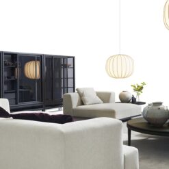 Framed by a Dark-stained oak structure, the sofa features clean lines that evoke a natural sensibility: its shapes echo the landscapes of the Maremma, with soft contours that gently flow along the frame’s perfect silhouette.
