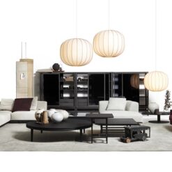 The same wooden frame can extend beyond the sofa’s end modules, evolving into shaped, square or rectangular side tables — also available as free-standing versions with Dark-stained oak or marble tops.
