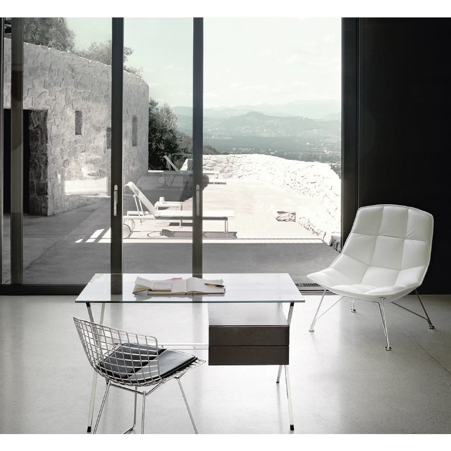 Franco Albini’s 1928 desk combines glass, steel and wood with striking clarity and balance. A clear demonstration of Albini’s rationalist design philosophy and minimalist aesthetic, the design derives its appeal through simplicity of form and celebration of material, without extraneous ornamentation.