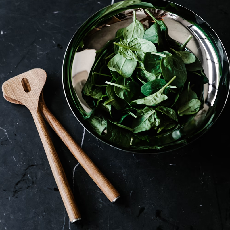 Sleek, contemporary and very stylish, this eye-catching stainless steel salad bowl brings a little Scandinavian design to the dinner table. Contrasting beautifully with the oak wood salad servers from the same collection, the dish can also be used for vegetables, pasta or even as a fruit bowl.