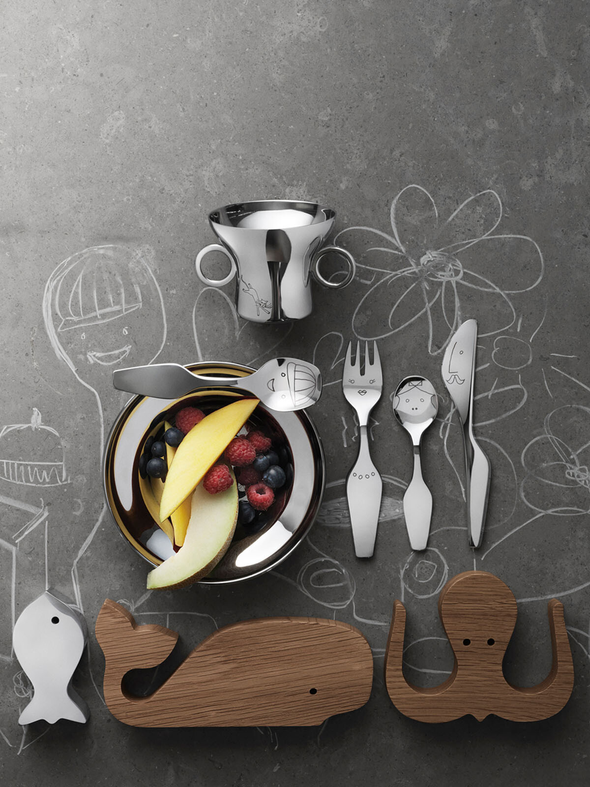 Getting children to sit at the table can be a challenge so add some quirky humour to the proceedings with these cheerful characters! Alfredo Häberli’s charming hand-drawn Twist family stare up at you from this kid’s cutlery set, bringing a sense of fun to every meal.