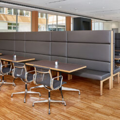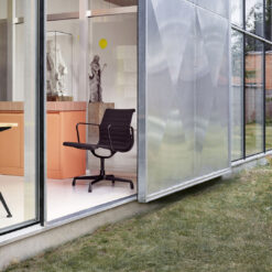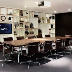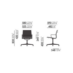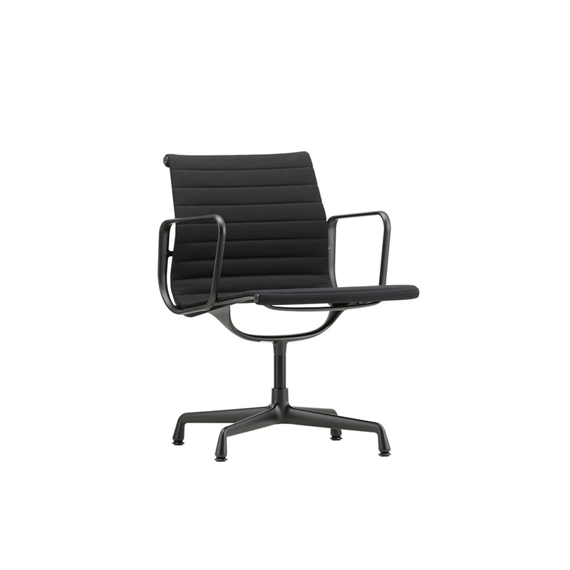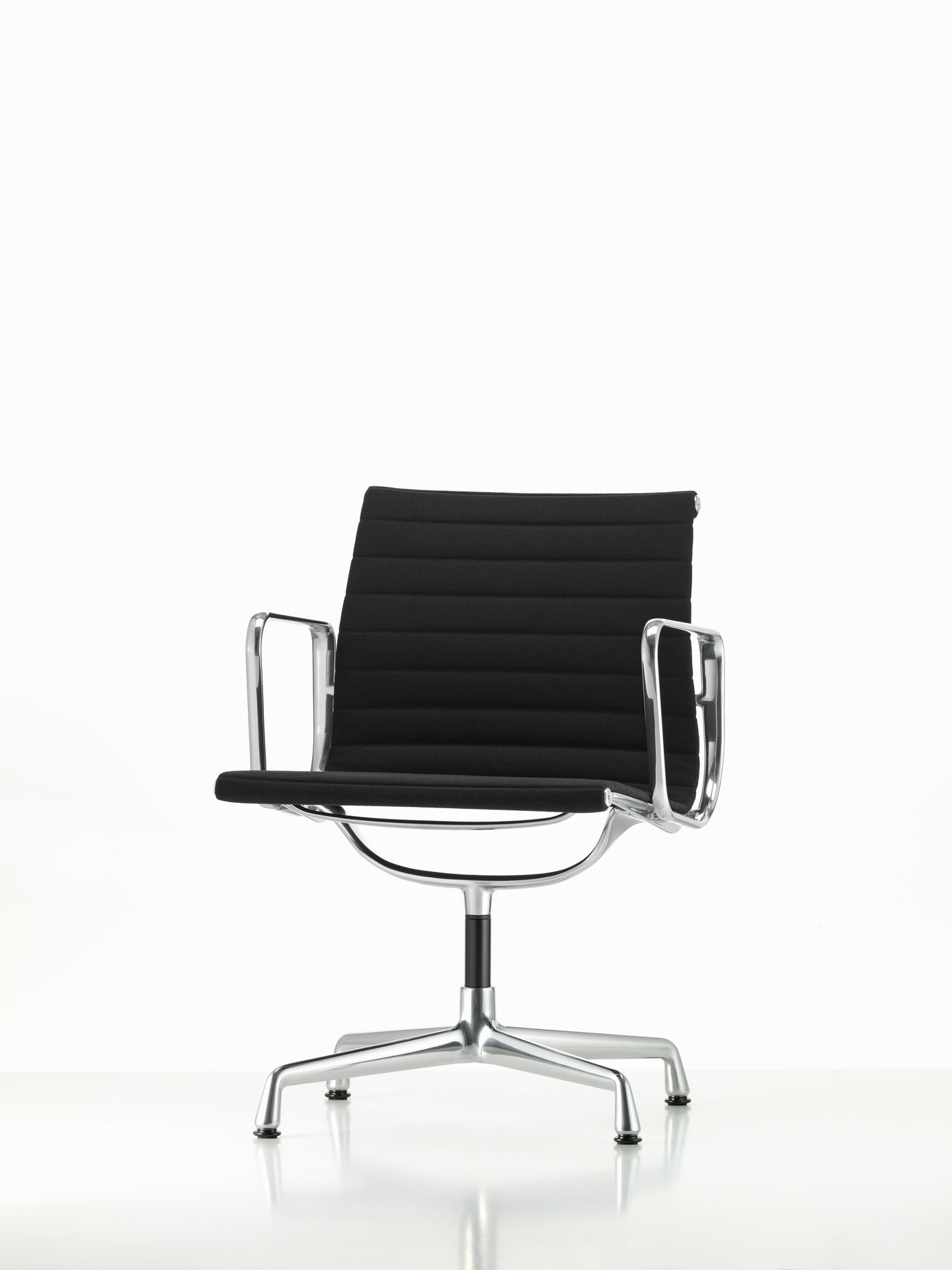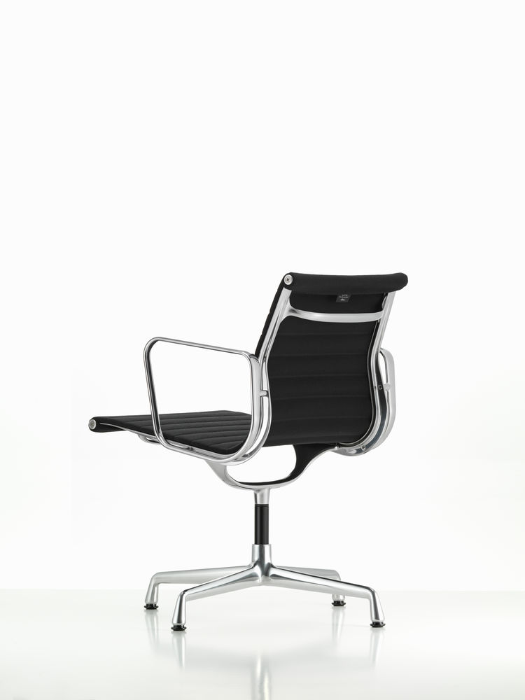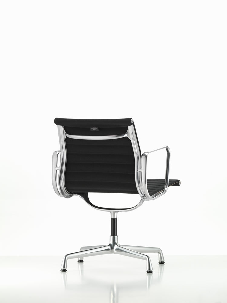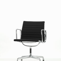 The Aluminium Chairs EA 105-108 are the quintessential solution for meeting venues. They are found in countless finely furnished offices, conference spaces and meeting rooms around the globe. Thanks to their generous proportions and resilient sling seat – a panel of leather, fabric or mesh stretched between two aluminium ribs – the chairs are exceedingly comfortable. And with such a wide selection of upholstery colours, it is easy to find the perfect chair for every interior.