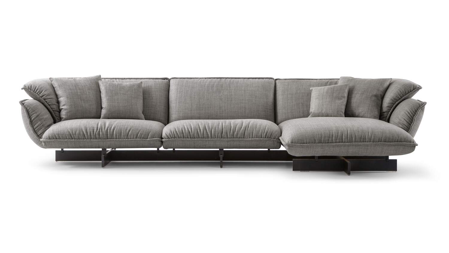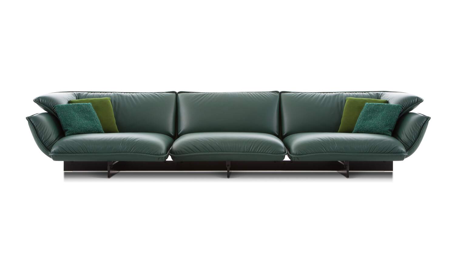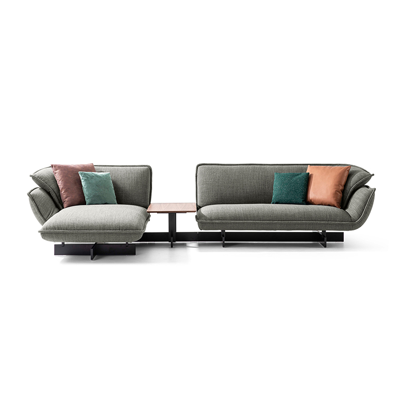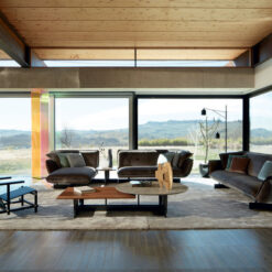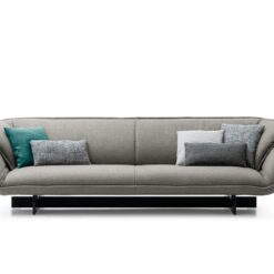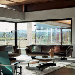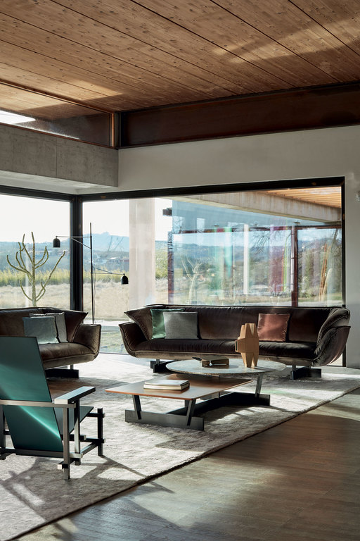 Paying homage to the work of Vico Magistretti, this innovative system of upholstered seating is underpinned by a supporting beam on which modules join together to create stylish, relaxing and functional compositions. The high back and the arm-rests create the effect of a warm, welcoming embrace, that effect heightened by the soft, inviting cushions. The mastery of Cassina’s craftsmanship is revealed in the pinched stitching around the perimeter of the cushions, adding an extra touch of refinement. With the feather-padded upholstery covering the CFC-free expanded polyurethane foam pads, adding to the cosy look and feel of the sofa. The system includes three sofas and various modular elements, including seating, side-tables, a foot-rest.