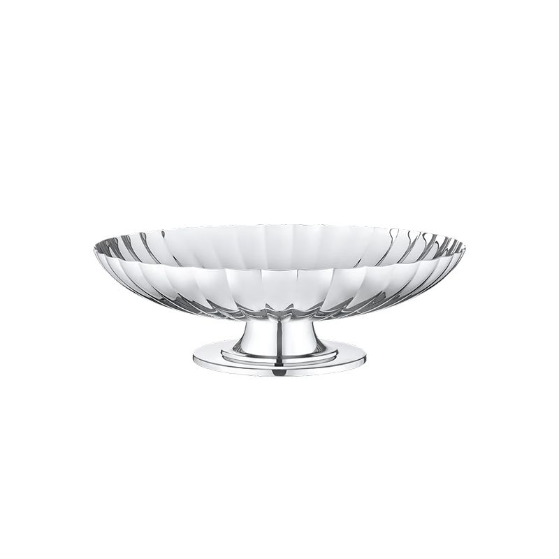 Inspired by the iconic work of Sigvard Bernadotte, the Georg Jensen design team created this elegant dish on a stand. Bernadotte’s distinctive fluting now appears radiating across the dish whilst the stand itself is taken from one of his original candlestick designs. It works beautifully as a centrepiece on a table, perhaps holding fruit or bread.
