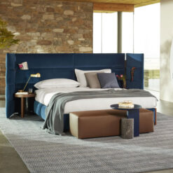 The Bio-mbo design bedside table, to complement the namesake bed by Patricia Urquiola, is circular in shape and comes in a version with both sides in aluminium and a convenient drawer.