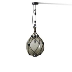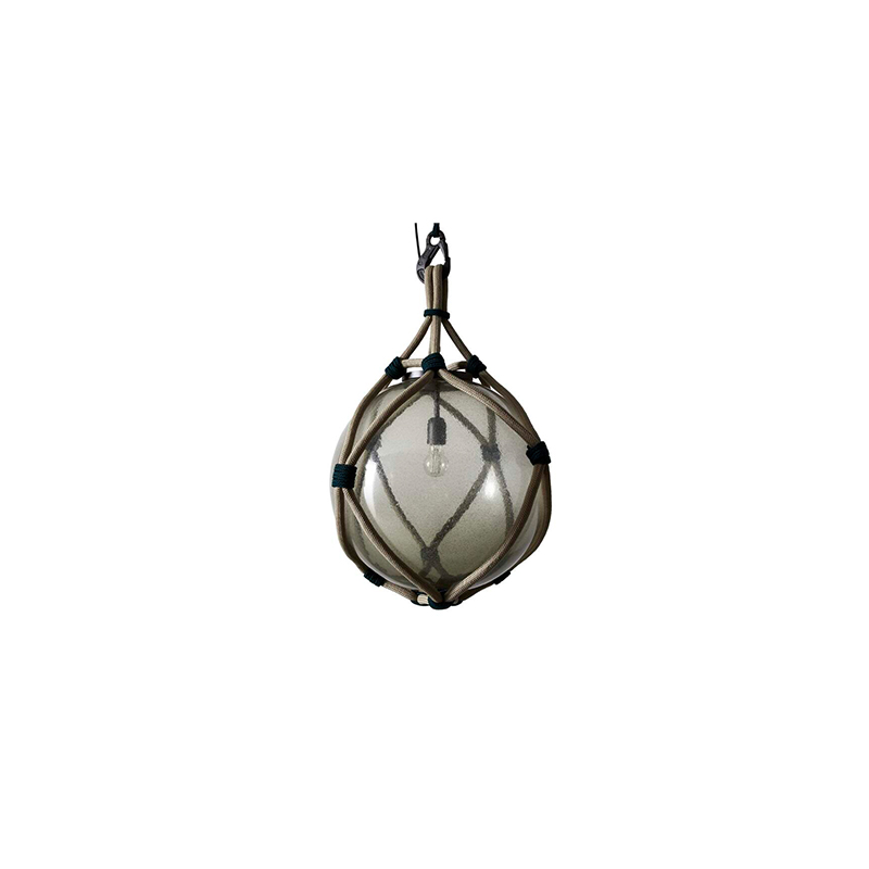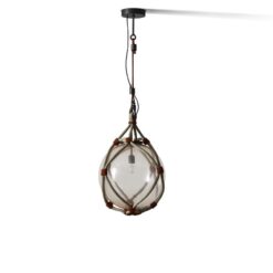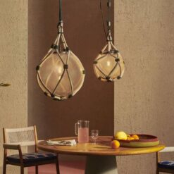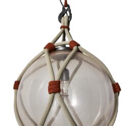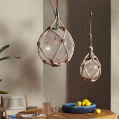 Pendant Lamp, Neutral Rope Structure with Green Knots, Fumé Glass – Ø 50 cm, Pendant Lamp, Neutral Rope Structure with Rust Knots, Pink Glass – Ø 50 cm
