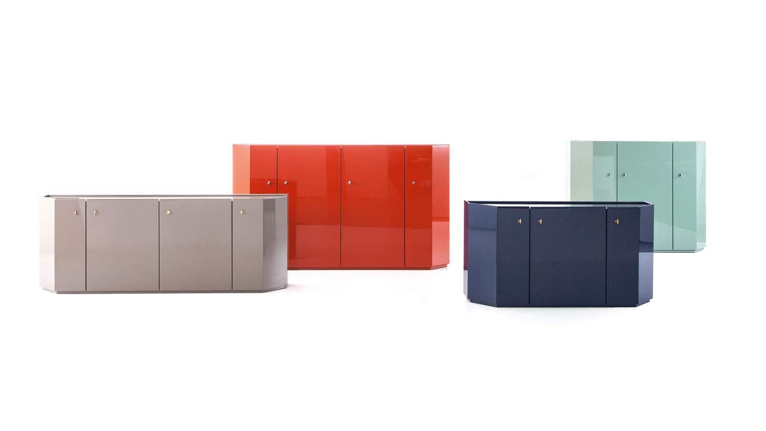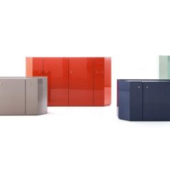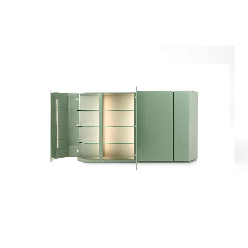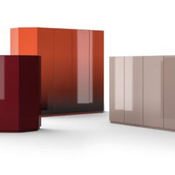A storage unit with modern lines, although of classical inspiration, that becomes the emblem of the Ultrarazionale collection, in this case an example of ancient lacquering techniques are being customized for industrial-level manufacturing. The iconic symbol of the SimonCollezione di Cassina, Bramante stands out for its architectural presence and versatility of use in different environments. The 2019 revision – which now extends to the Bramantino version – maintains the shapes and dimensions but profoundly changes the constructive design by eliminating the modules, making it more contemporary and adding a new interior LED light and continuous glass shelves showcasing a spirit of innovation. The handcrafted finish enhances the surface with multiple lacquer passages that define its uniqueness and preciousness; Available only for the Bramante are three precious hand-shaded versions combing two different colours.