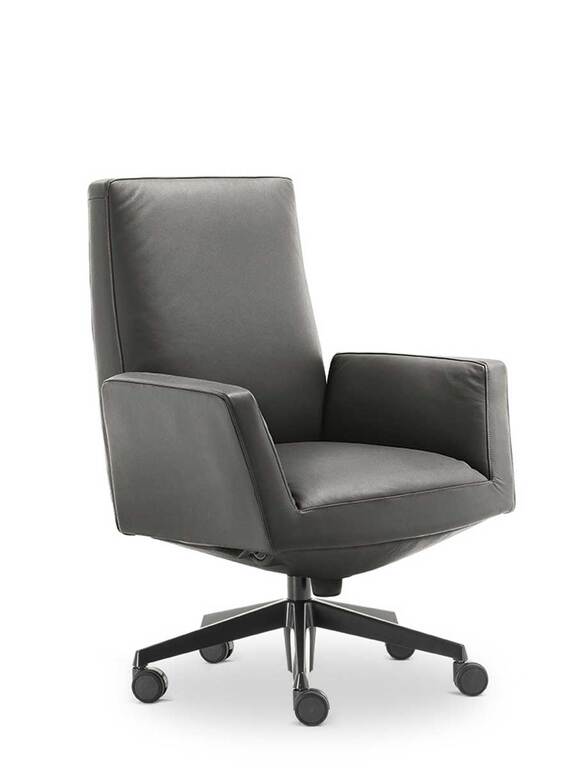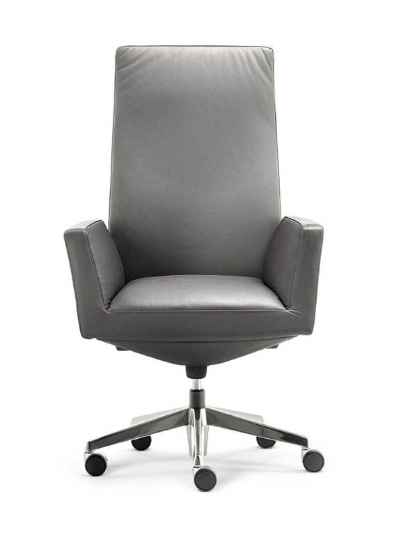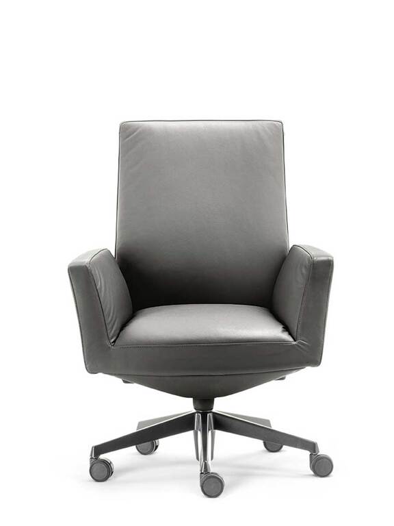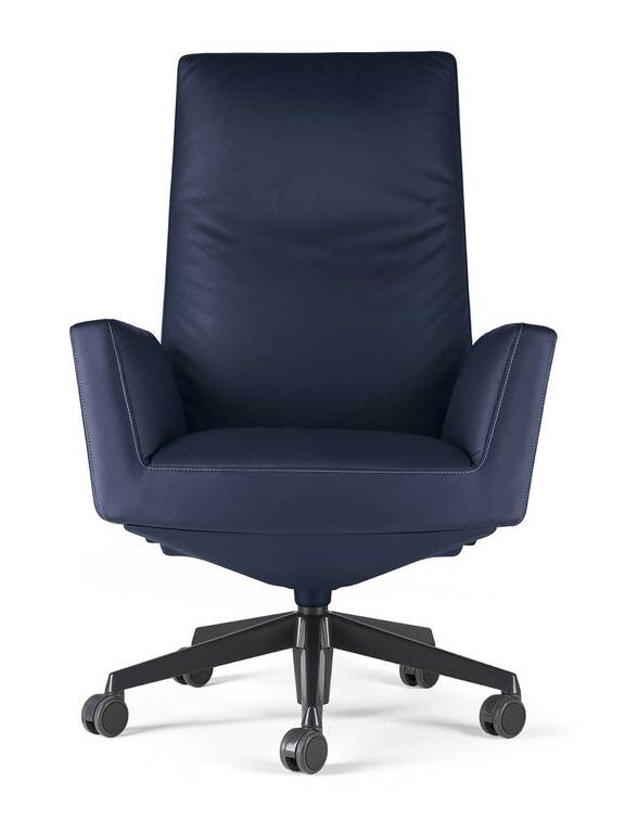 The base of the Chancellor armchairs is a five-star design with soft self-braking casters or glides. Upholstery is in Pelle Frau®, which can also cover the Syncron mechanism housing where applicable.