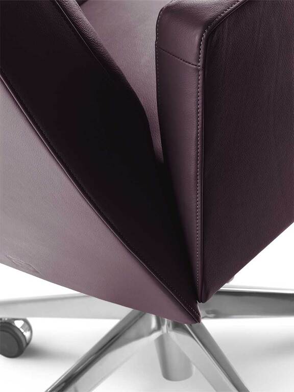 The Chancellor armchair, available in President, Executive and Managerial versions, is height-adjustable, swivels on its own axis and is equipped with a sophisticated “Syncron” tilt mechanism for both backrest and seat. This allows a continuous progression through five positions, ranging from upright seating to a full chaise-longue position. The Meeting version features a 360° rotation mechanism.