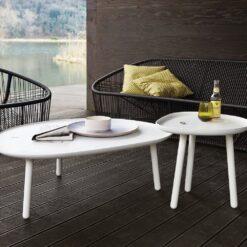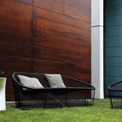 An important position in the outdoor collection is held by the Club sofa and small armchair designed by Prospero Rasulo. Their internal structure is in painted steel (suitable for outdoor use) and woven PVC rod with reinforced nylon.