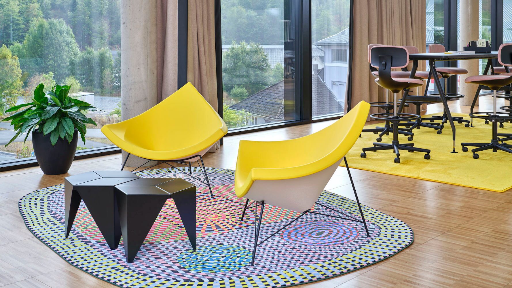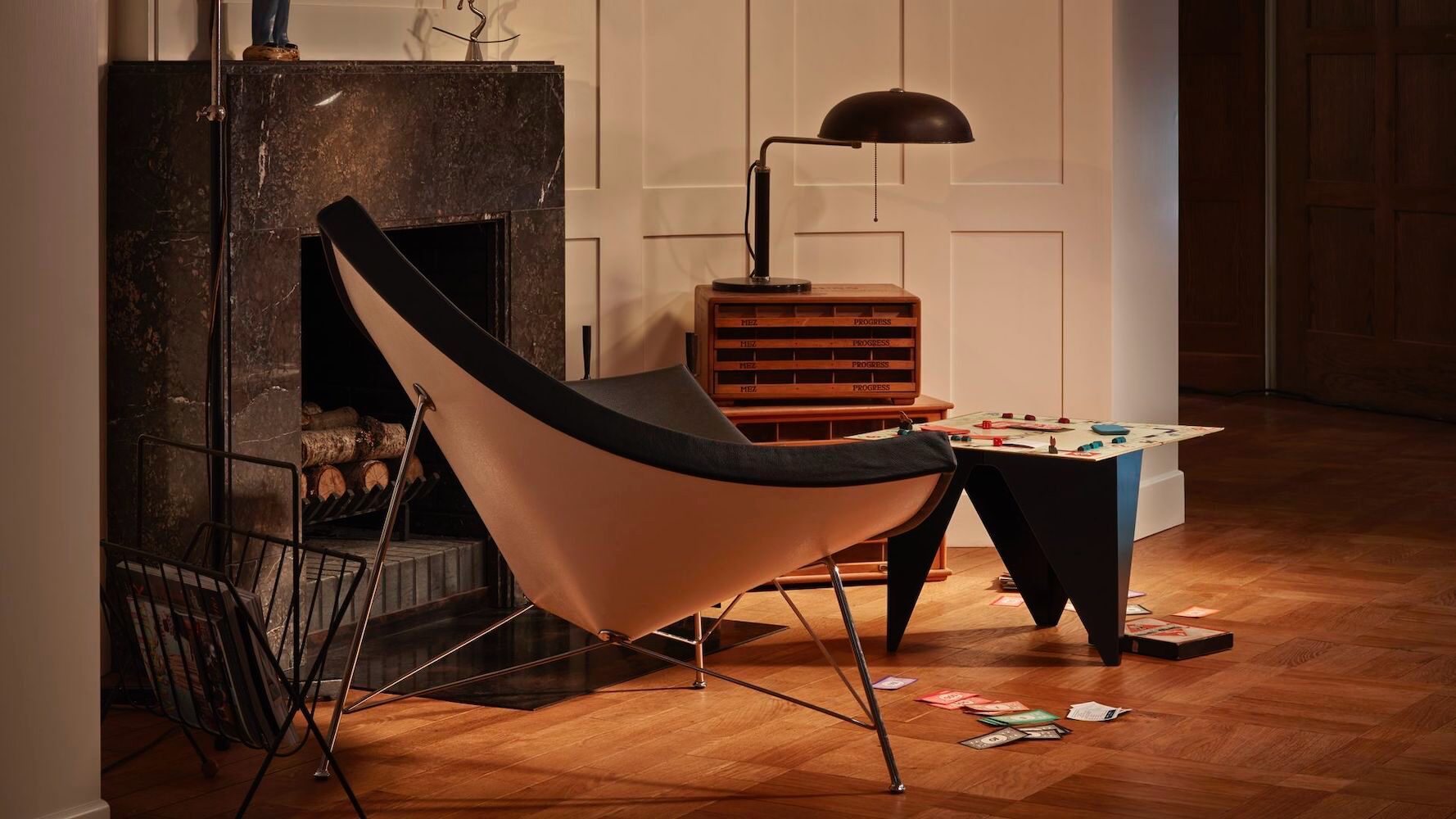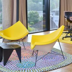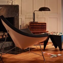 However, the colour scheme of this iconic, spacious lounge chair is reversed: the outside of the plastic shell is white, while the comfortable one-piece upholstery is covered in high-quality leather or fabric in a variety of colours.