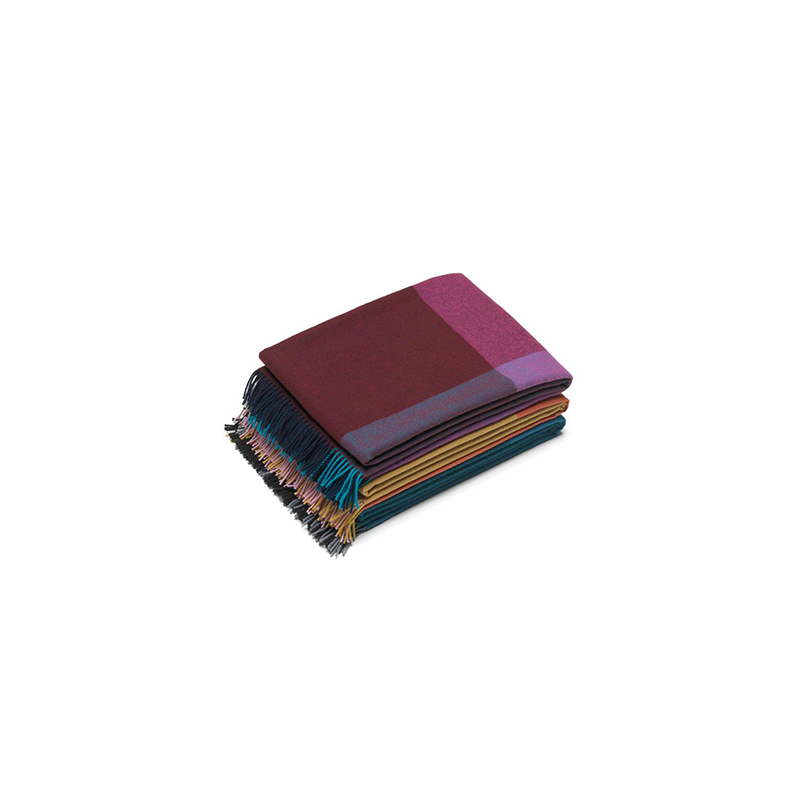 Four contrasting colour blocks form the decorative overall pattern of the Colour Block Blankets by Hella Jongerius. This snug blanket is made of Peruvian highland wool from a hybrid breed of sheep: a cross between a Merino, whose wool is extremely soft, and a Corriedale, which is known for its sturdy fibres.