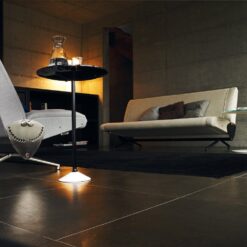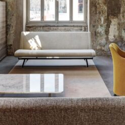 D70 is the original movable-wing sofa distinguished by the cult mechanism that allows a wide range of positions between seat and backrest, up to complete reversibility of one another. The series of adjustable movements go from fully closed to fully opened, converting the sofa into a bed.