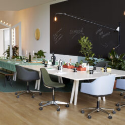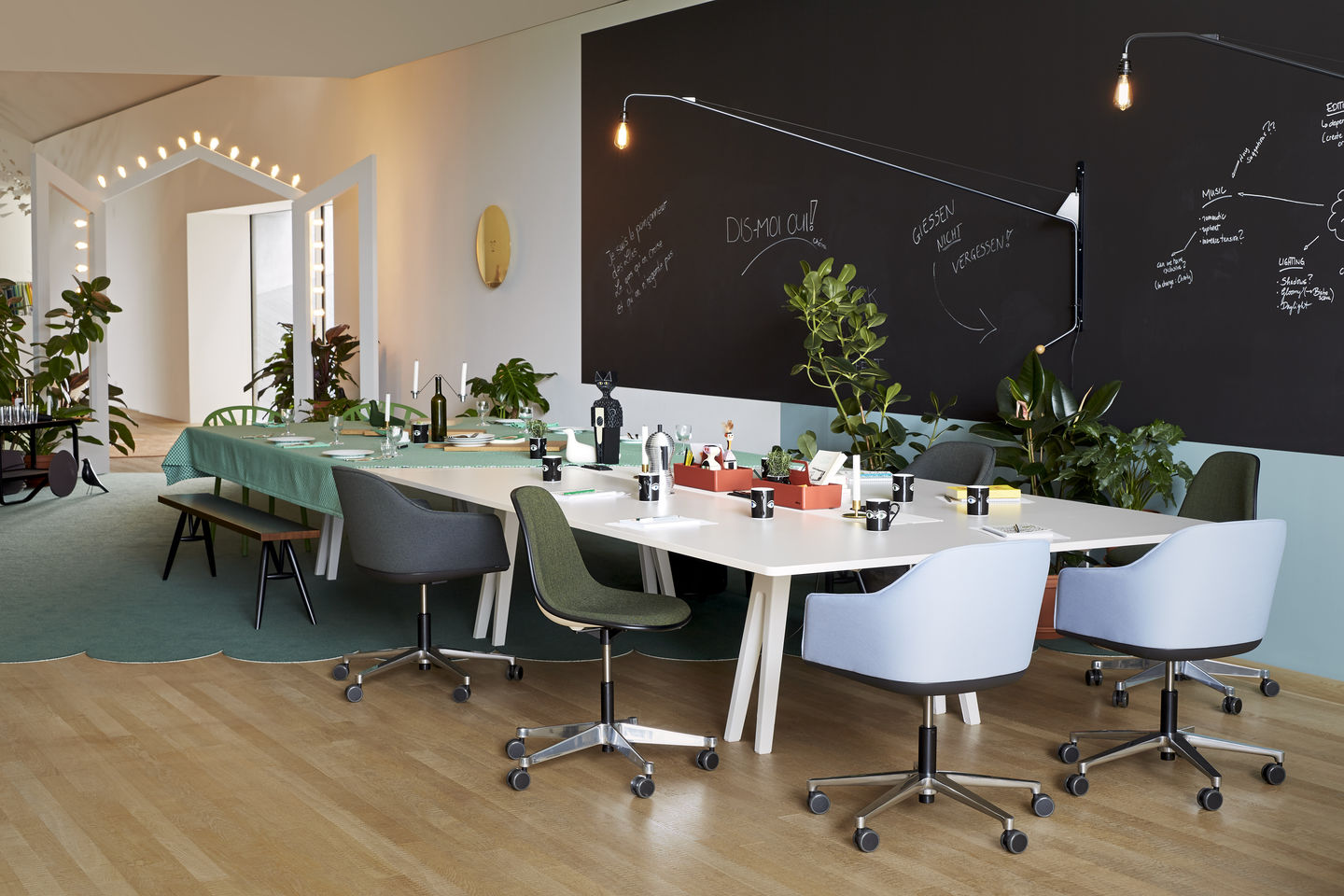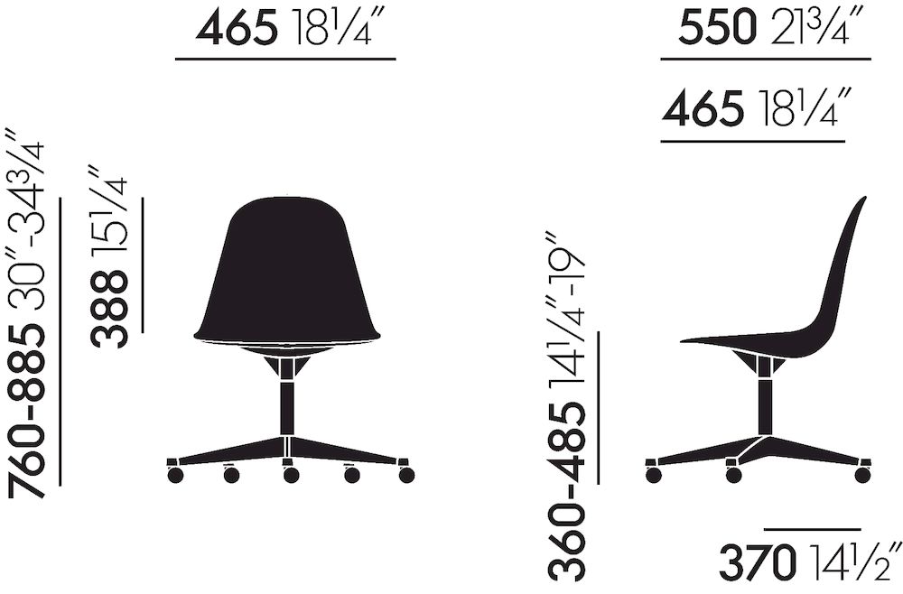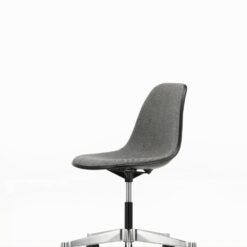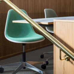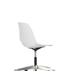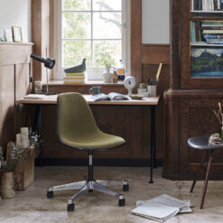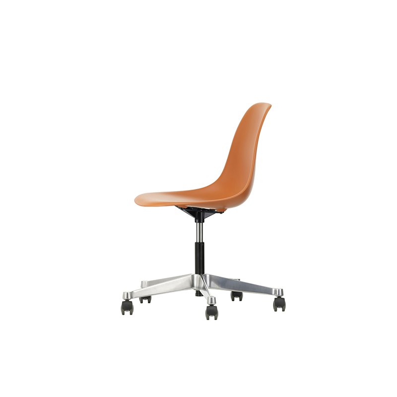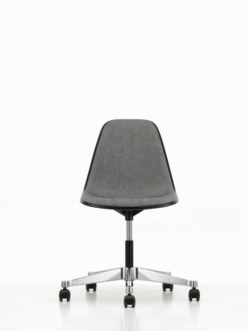 The varied selection of bases for the Plastic Chairs RE by Charles and Ray Eames makes it easy to find the right model for a wide range of locations and situations. For instance, the Pivot Side Chair Cast Base on Castors (PSCC) is ideal for informal workspaces, studios and home offices. Thanks to the swivel-mounted seat shell made of post-consumer recycled plastic, with shock-absorbing suspension and continuous height adjustment, the chair ensures superb comfort that can be further enhanced by an optional seat cushion or full upholstery.