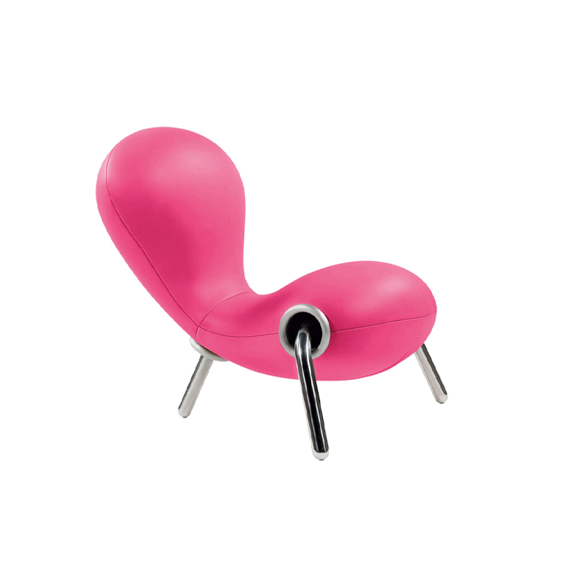 Designed by Marc Newson, the Embryo Chair has three legs and a chromed steel structure padded with moulded polyurethane foam.