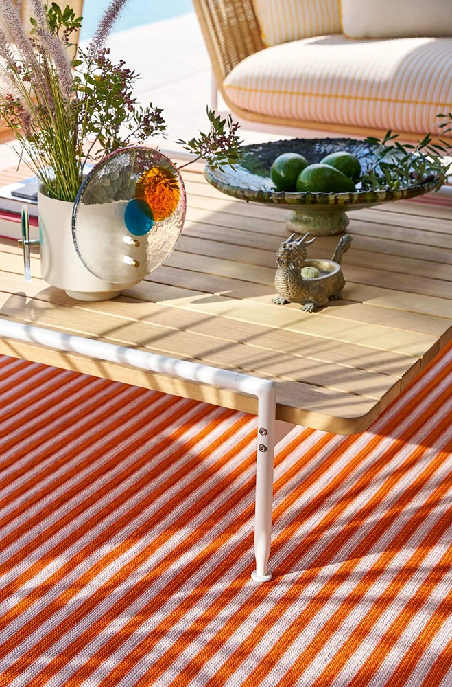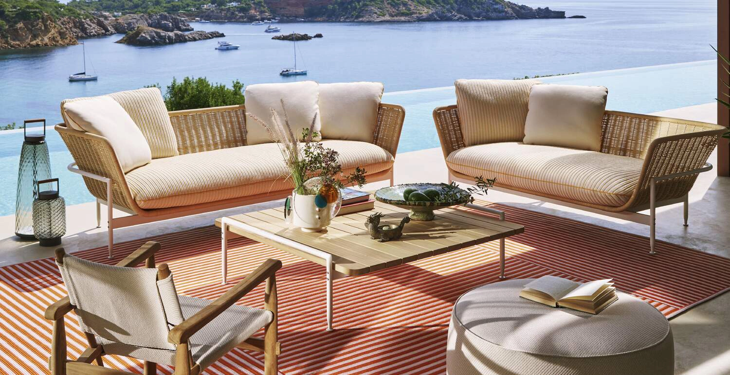 Next to the sofa, armchair or love bed, the Esosoft Outdoor system offers a series of low tables of different sizes to complete the outdoor decor.