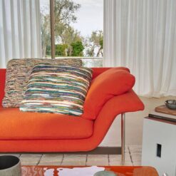A living room system designed to define the domestic landscape in a fluid, flexible manner. This is Esosoft ‒ the first project by Antonio Citterio for Cassina ‒ a modular sofa that embodies the timeless elegance and style the Italian designer is known for and, at the same time, is an aspirational tribute to the art of the great masters and to the practice of visualizing furniture by detaching the structural part from its padded interior. In fact, Esosoft consists of an aluminium exoskeleton and a shell with an organic silhouette upon which soft cushions are placed. Past and future coexist in this shape ‒ reminiscent of the concept of casual comfort typical of the 1960s ‒ that benefits from cutting-edge production techniques, mindfully chosen to make the system circular and sustainable. Thanks to the work of Cassina LAB, materials like a polyurethane foam that contains a percentage of polyols deriving from biological sources and blown recycled PET fibre in the backrest cushions.