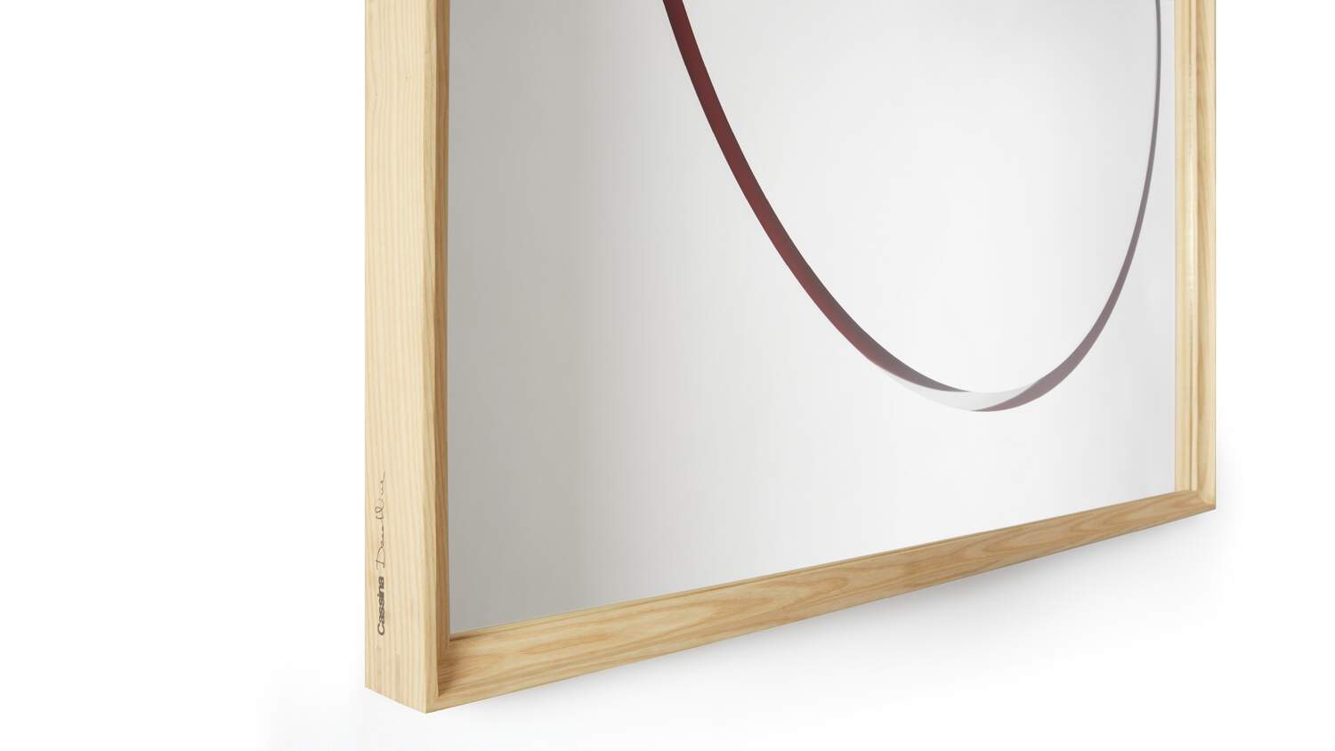 The mirrors making up the Deadline collection by Ron Gilad are ingeniously designed hybrid objects, combining premier engineering and carpentry skills of the highest order. 16 unique pieces, each set in its own black or white ashwood frame, each of which boasts a different texture and shape. Every piece is composed of two sheets of glass, 12mm apart. The front face is silvered, the back being coloured orange, blue, or red. These colours are reflected in the second mirror, to create a subtle interplay of graphic shapes. The frame comes apart so the mirrors can be cleaned. It is fitted with high-profile joints, the better to emphasise that this is an example of craftsmanship. The oblong, square, or rectangular frames highlight the difference between each option, reinforcing the idea of the unique nature of the work of art. *Deadline mirror launch by Ron Gilad @ Cassina IXC, Japan*
