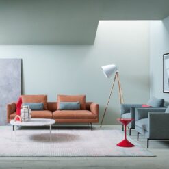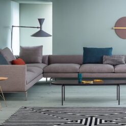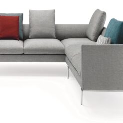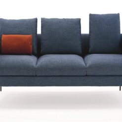 There is no need to be oversize: Flamingo is  comfortable with restrained and well-balanced proportions. The designer affirms to have focused on details: then the sofa linear quality is broken up by the distinctive ‘sweeping arc’ seam to at the front of the armrest, the aluminium alloy legs are slightly inset from the sides which communicate a sense of lightness, the padded parts feature established seating places, while the backrest and armrests are formed by one single piece of the same height, interrupted by cushions in different sizes.