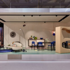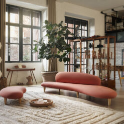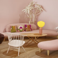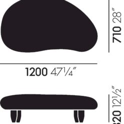 The sculptural quality of Noguchi’s design vocabulary finds expression in the Freeform Sofa: it is entirely different from other designs of the same period, appearing in combination with the Ottoman like an enlarged sculpture of flat, rounded river stones. The slender organic forms are fluid and graceful. Noguchi emphasises the lightness of the elements with thin yet comfortable upholstery and a choice of cover fabrics in natural colours.