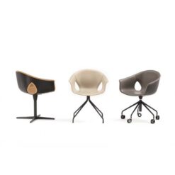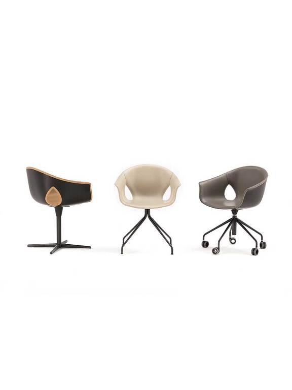 Comfortable, versatile and elegant, the Ginger Ale armchair lends itself both to workspaces, individual workstations or meeting rooms, as well as domestic settings, such as the study or dining room. With the specific aim of catering for all needs, Roberto Lazzeroni designed it with both a painted metal base and with wooden legs, allowing for a total of five different bases.