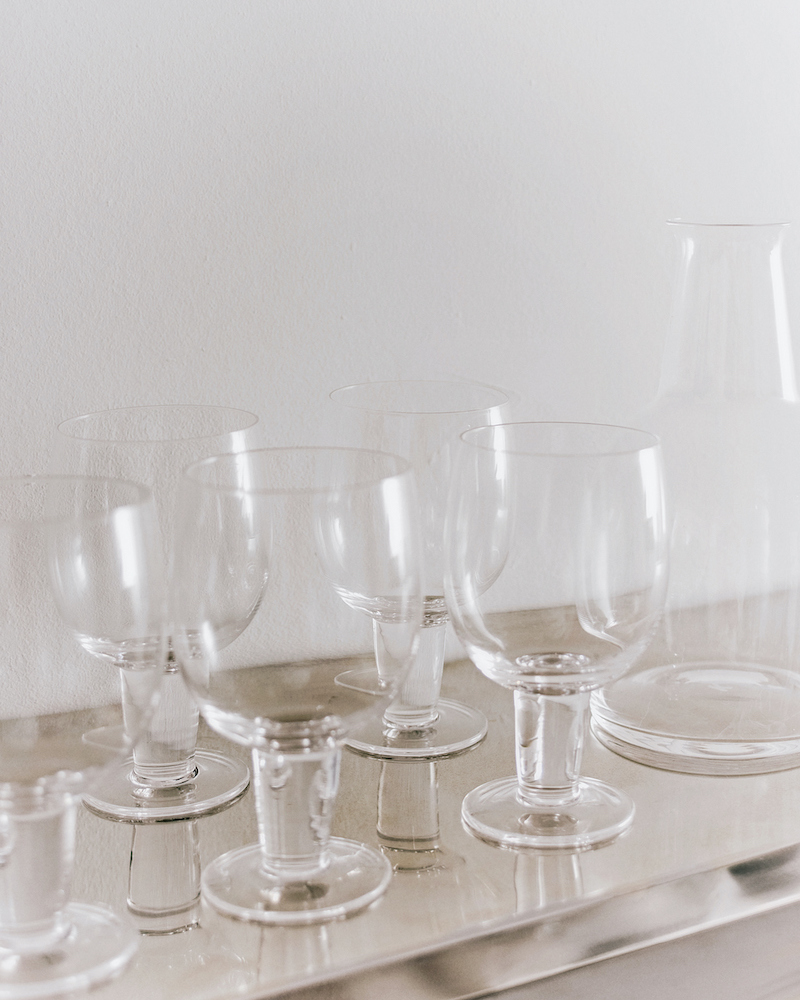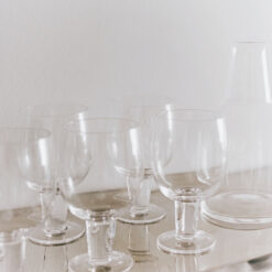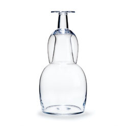 Since it was designed in 2000, Glass Carafe has been hiding in Aldo Bakker’s prototype archive. The carafe’s wide bottom that converts into a very slender neck creates a soft and organic shape. The same shape is mirrored in the drinking glass, which doubles as a lid for the carafe itself. Whether the two are placed next to each other or with the glass upside down on top, the shape of the set has a fascinating and eye-catching appeal. Glasses are also sold separately in a set of four.