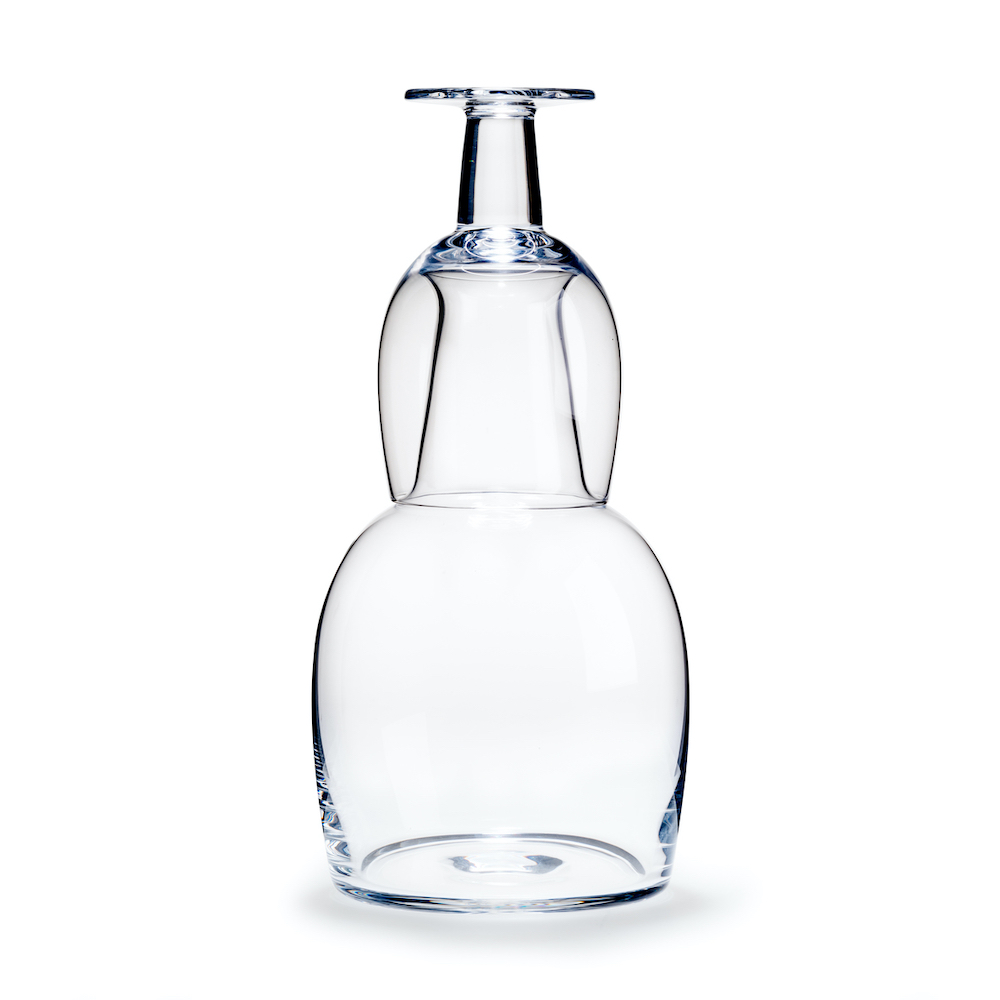 Whether placed side by side or with the glass inverted atop the carafe, the set’s shape captivates with its intriguing allure.