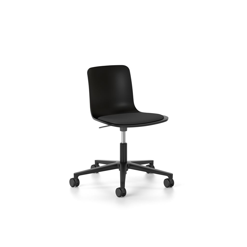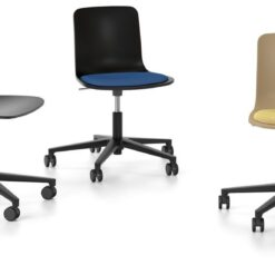 The HAL RE Studio swivel chair is part of the extensive HAL family of chairs designed by Jasper Morrison and a perfect choice for informal office settings, learning environments, healthcare institutions or the home office. The comfortable seat shell made of recycled plastic is easy to clean and can create striking colour accents. HAL RE Studio is height-adjustable, fitted with shock-absorbing seat suspension and is available with a plastic seat shell in a choice of hues.