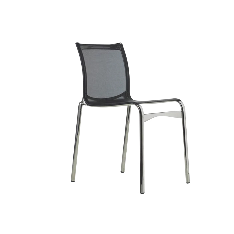 Stackable chair with structure composed of extruded aluminium profile and die-cast aluminium elements. Seat and back in fire retardant PVC covered polyester mesh, in eco-leather Serge Ferrari®, in fabric Camira®, Reviva® or Kvadrat® or in Pelle Frau® leather.
