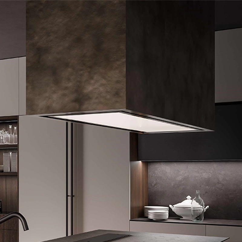 The kitchen hoods of the Boffi systems are not standardised but vary in concept, design, and use. They can be island, built-in, open, or totally concealed, to be associated only with certain models of the Boffi collections. The integration of materials meets ease of use, ensuring maximum performance with minimum noise.