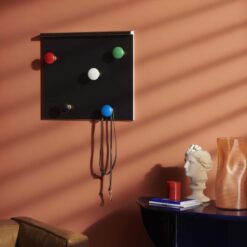 This coat-rack was originally created by Le Corbusier for the Cabanon, a summer-house on the Cote d’Azur that he designed in 1951 as a birthday present for Yvonne, his wife. This re-issue by Cassina is based on the 1957 version, which had been made for the Unités de Camping, which was next to the Cabanon. In line with the bright colours used for these minimal spaces, keyed on the compact comfort offered by a cruise-ship cabin, the coat-rack too was multi- hued. The base is made of oak, while the hooks are mushroom-shaped, and are placed at varying heights, based on the criteria established in the Modulor.