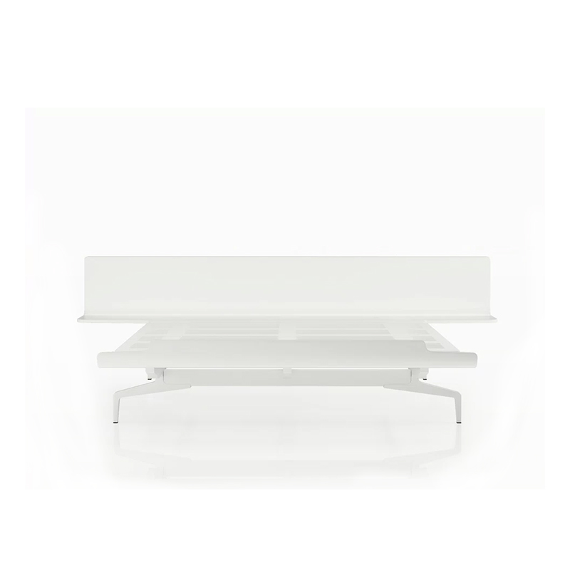 The die-cast aluminium legs supporting the solid wood frame are the distinctive elements of LEGNOLETTO, an articulated and complete bed collection that elegantly furnishes a room.