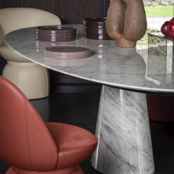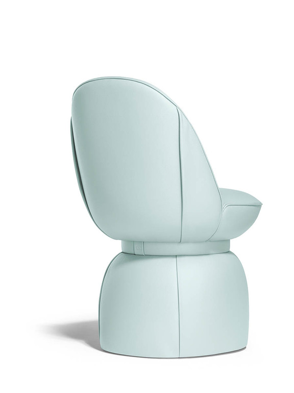 The structure of the Leplì padded chair comes with birch and poplar plywood, with kraft cardboard padding. The backrest structure is made of Polimex® and poplar plywood. The padding is made of polyurethane foam and polyester wadding. The Leplì design chair comes in various combinations of leather and fabric. The base can be fixed, made of MDF painted black and scratch-resistant; rotatable, with ‘return’ mechanism that allows a 360° rotation with return to the initial position; and with wheels, with 5 pivoting wheels inserted inside the base.