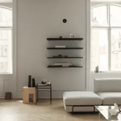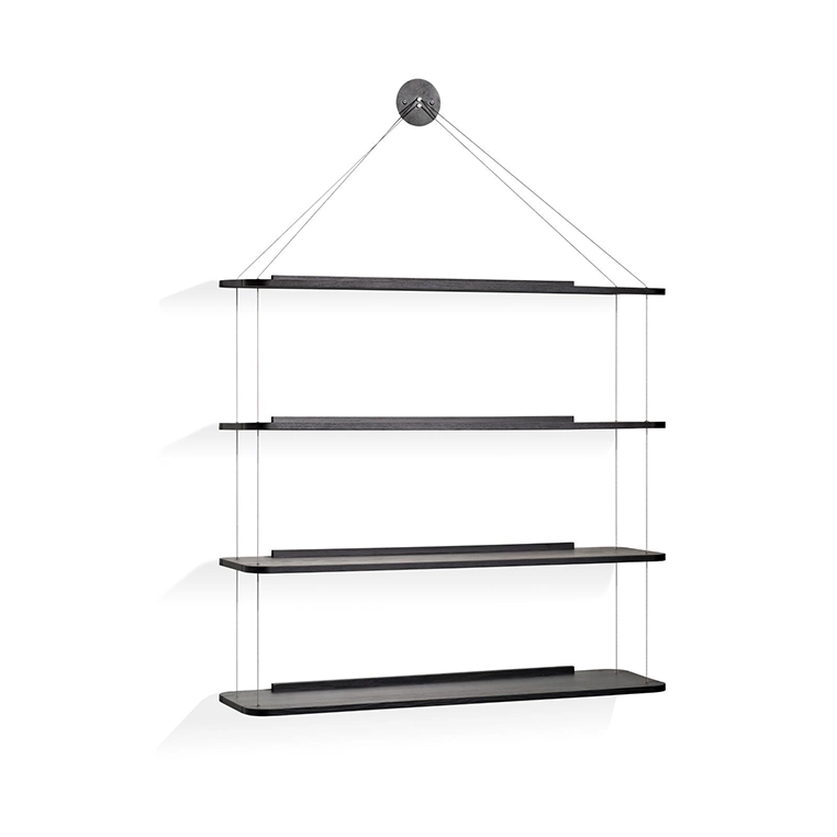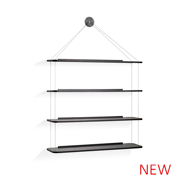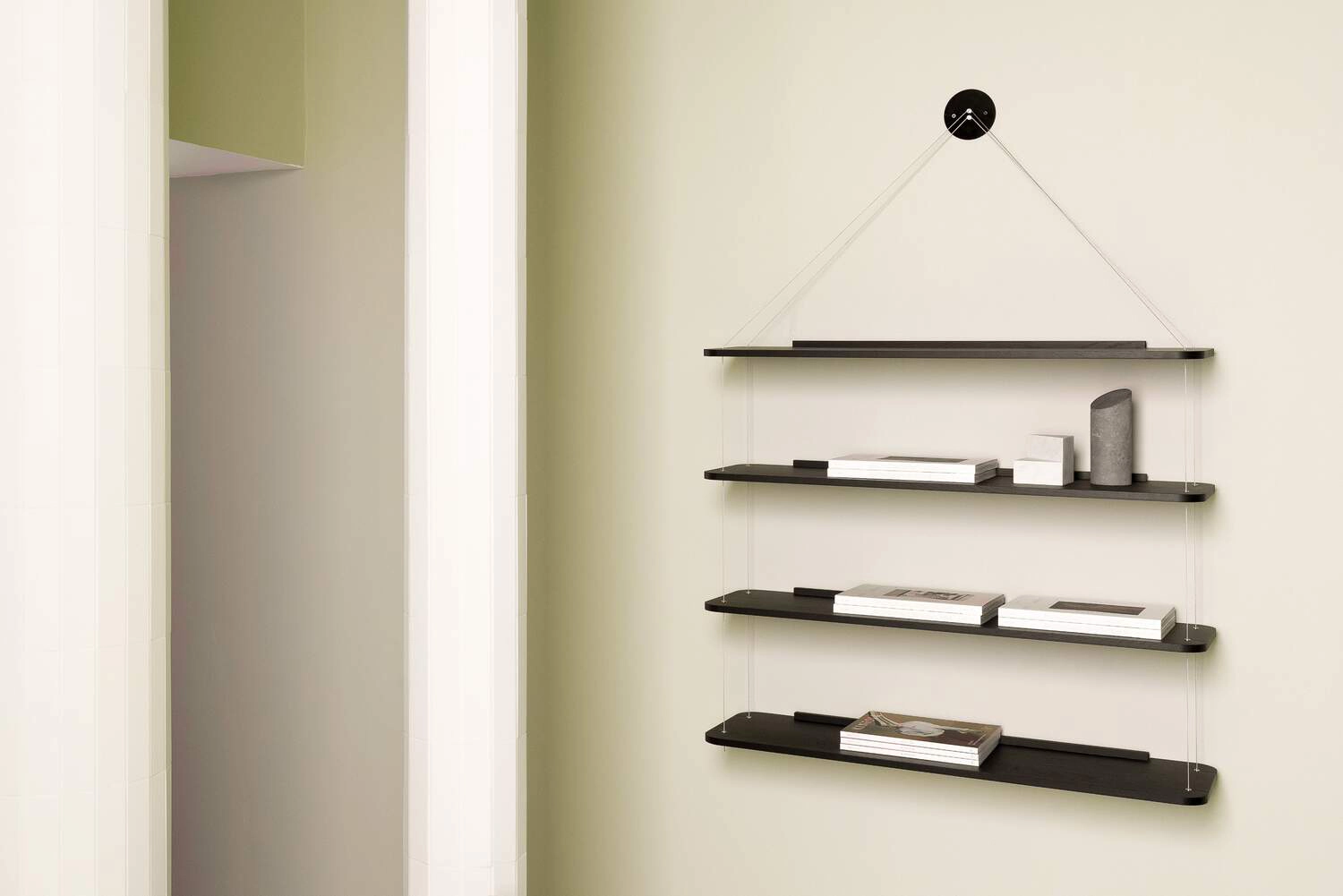 In an effort to reduce the structure of a bookcase to its bare essentials, Achille and Pier Giacomo Castiglioni decided to assemble four shelves joined with two cables, fixing them to the wall with a single attachment point.
