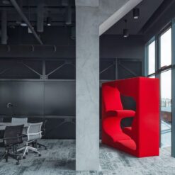 Over two metres high, the appealingly upholstered seating tower has a stable frame made of birch plywood. The cleverly arranged interior niches can be used in sitting and reclined positions, encouraging communication and relaxation.