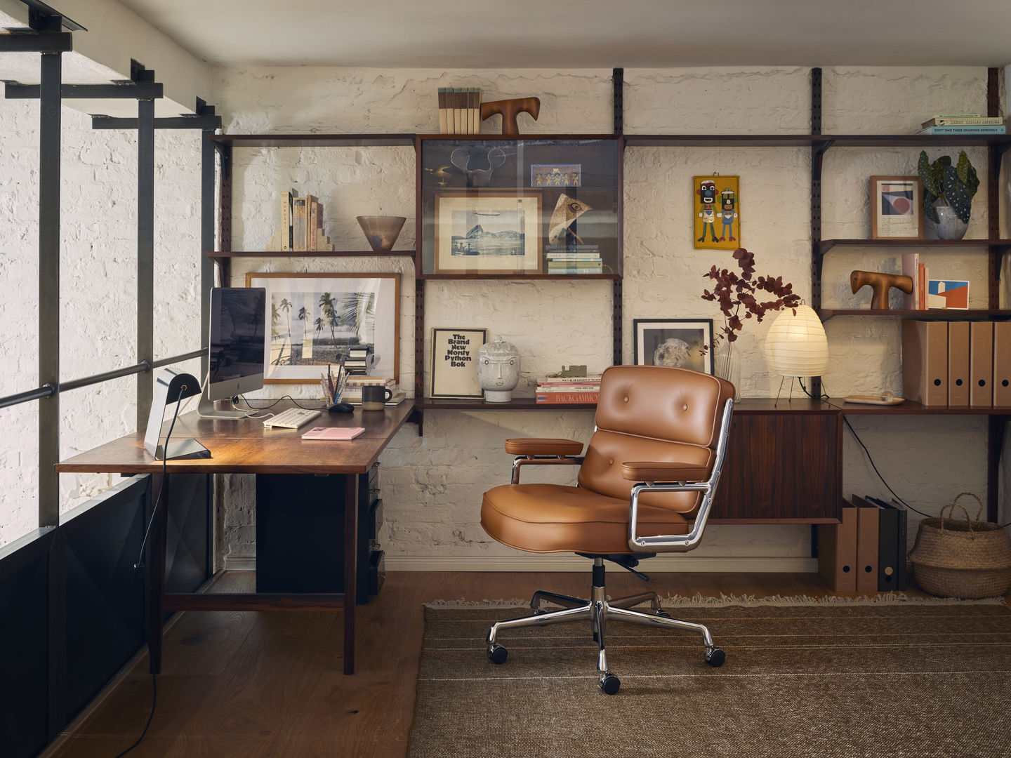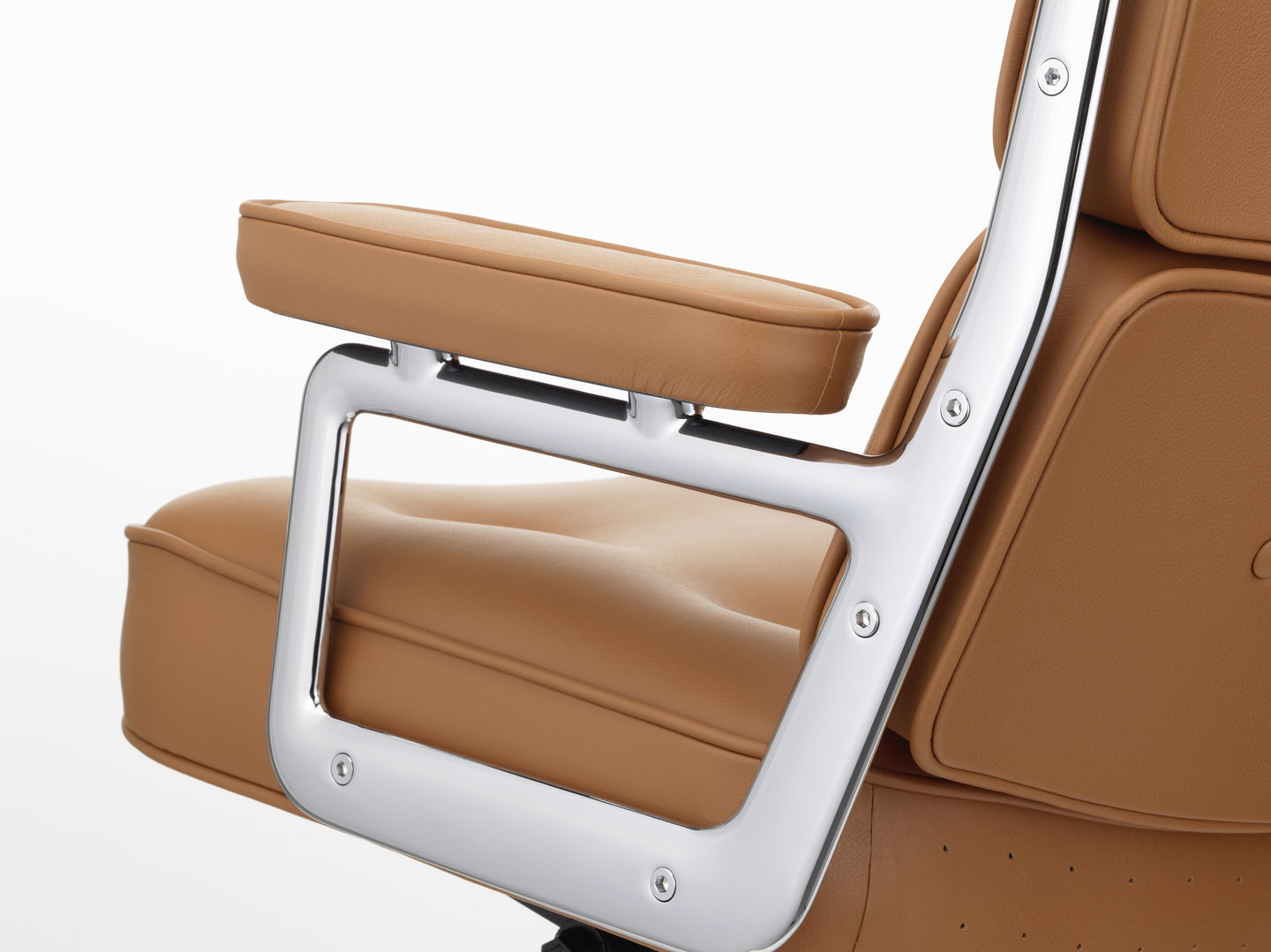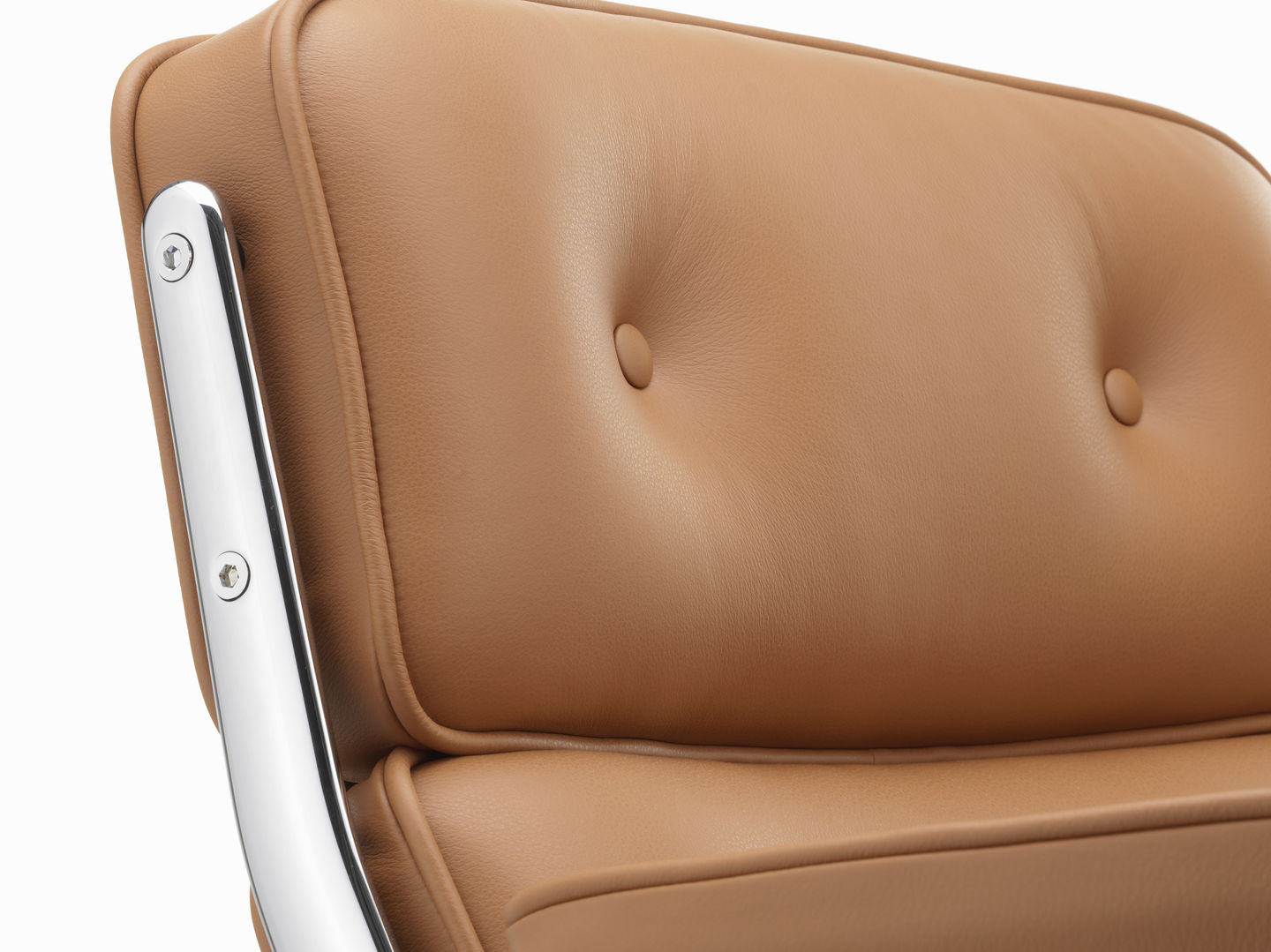 Backrest and seat: side frames in chrome-plated die-cast aluminium. Cushion elements made of recyclable polyurethane foam ‘V-Foam’, covers in leather.