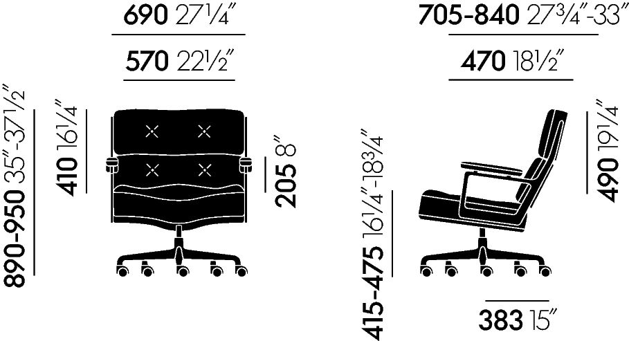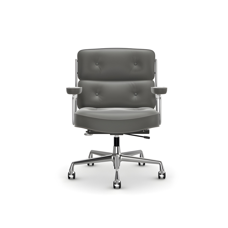 Base: five-star base in chrome-plated die-cast aluminium, on castors. Equipped with hard castors for carpet or soft castors for hard floors.