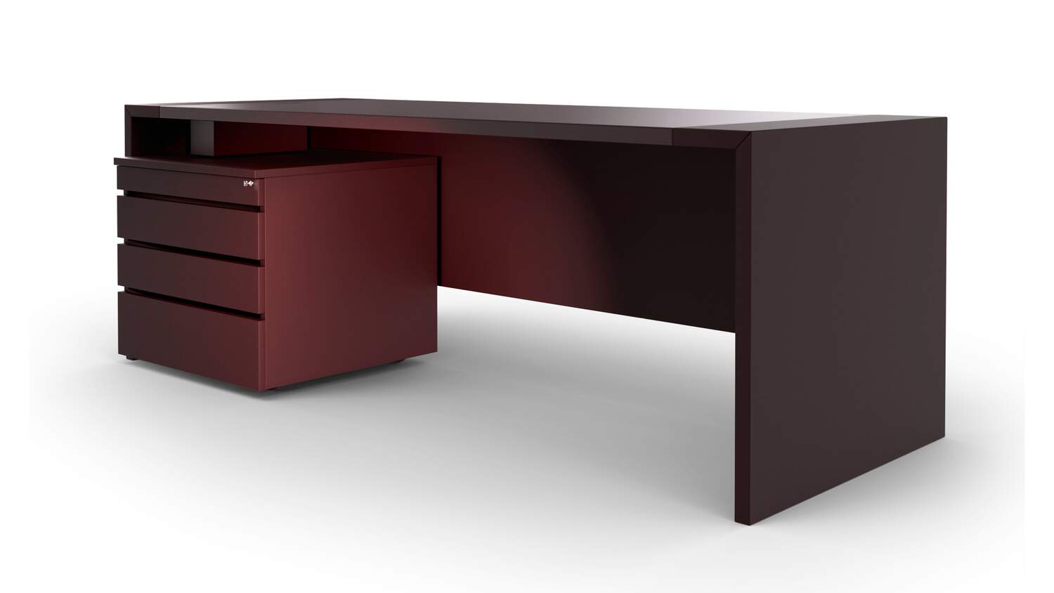 This desk is a historic icon that borrows its name from Chicago’s city center business district. An impeccable product, designed by Takahama, combining design and functionality in the perfect executive office desk. Its shape is enhanced by the opulent matte or mirrored lacquer finish and by the precise 45° joints between the top and sides. The central part of the top is clad in leather to heighten its practicality and protect the lacquered structure. The structure is equipped with integrated power access. The piece can be paired with the Orseolo file cabinet.