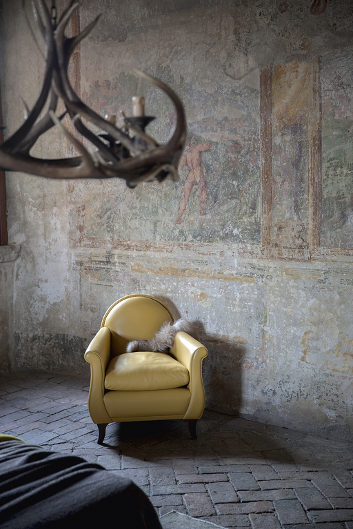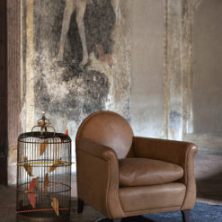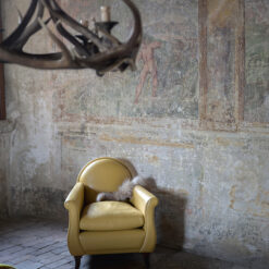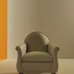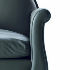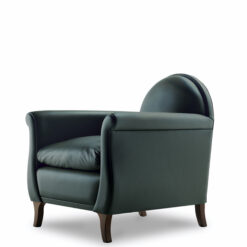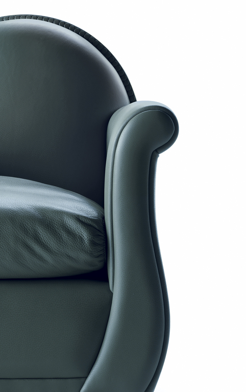Renzo Frau’s 1934 replica, with its rounded backrest refined with leather-covered pins, is also influenced by the formal traits of gentlemen’s clubs, smoking rooms and Victorian parlours with its deep seat, comfortable armrests and thick goose down cushion. However, the Lyra armchair gives them a more feminine feel thanks to its sinuous, graceful lines and compact dimensions.